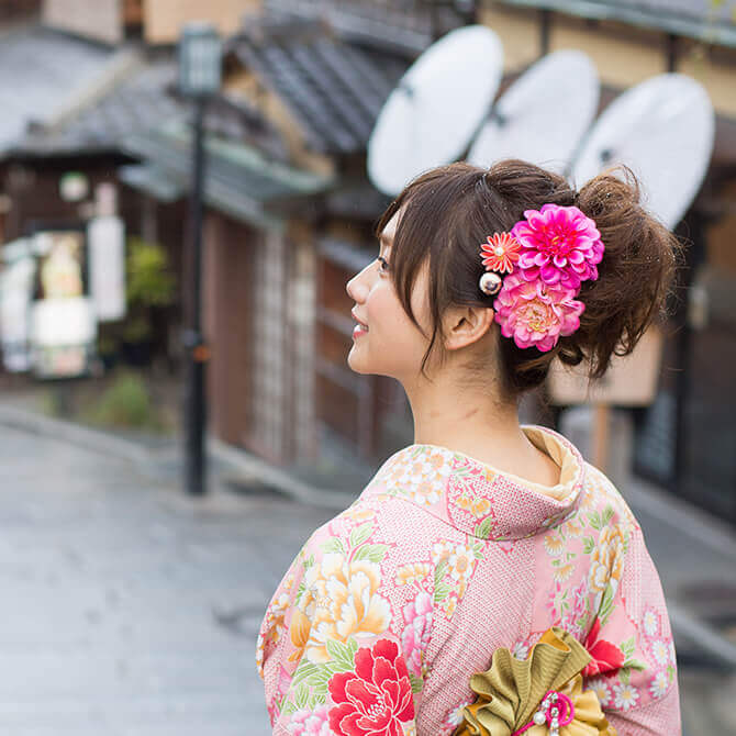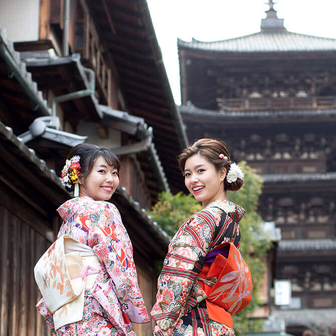 創業180年の老舗『岡本』は、観光の着物レンタル発祥の店。 清水寺・八坂神社・祇園など京都の観光地ど真ん中に7店舗のレンタル着物店を構えております。 こだわりのレンタル着物は総数30,000着、各店1,000着以上常備!着物のレンタルプランにはプロの着付けまでセットになっております。 祇園・清水寺など京都の観光スポットまで手ぶらでお越しいただき、着物でお散歩しながら古都京都の町をお楽しみ下さい。