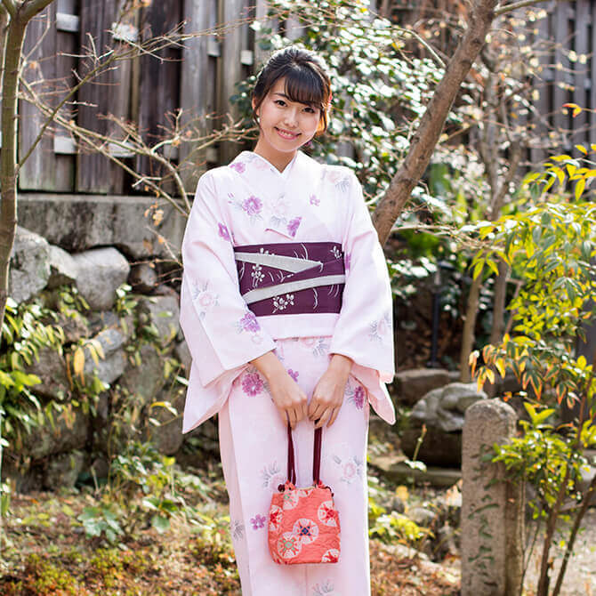 小紋よりも袖が長く、袋帯で帯結びも豪華になりとても華やかです。ウェディング用はもちろん、特別な日の散策でのご利用もおすすめです。