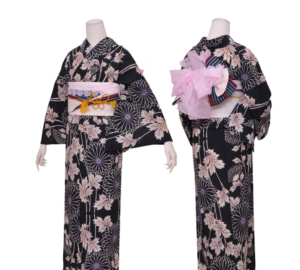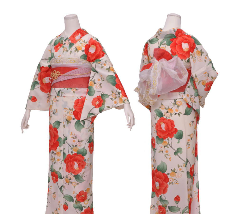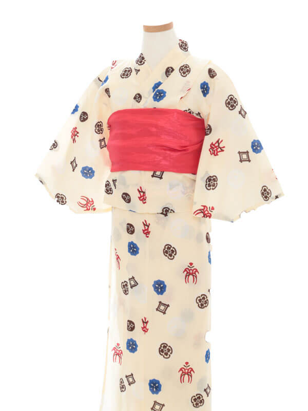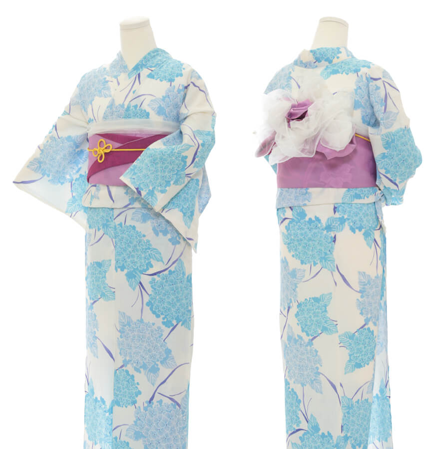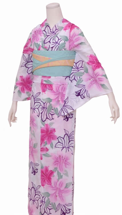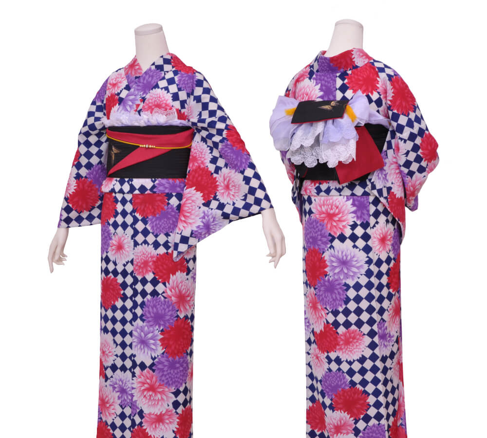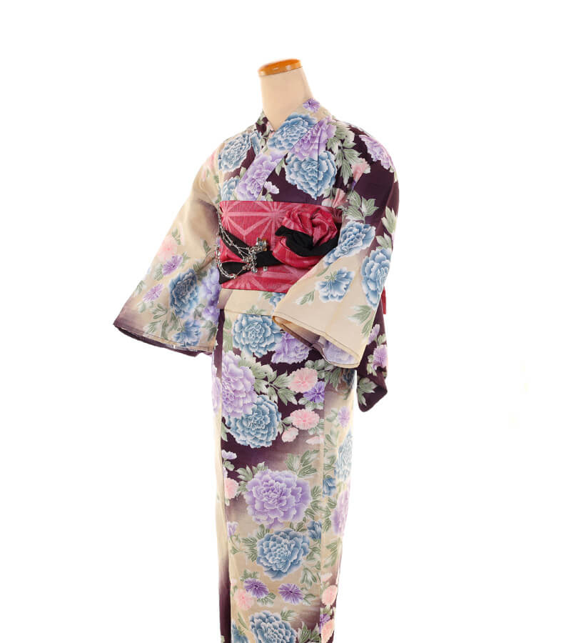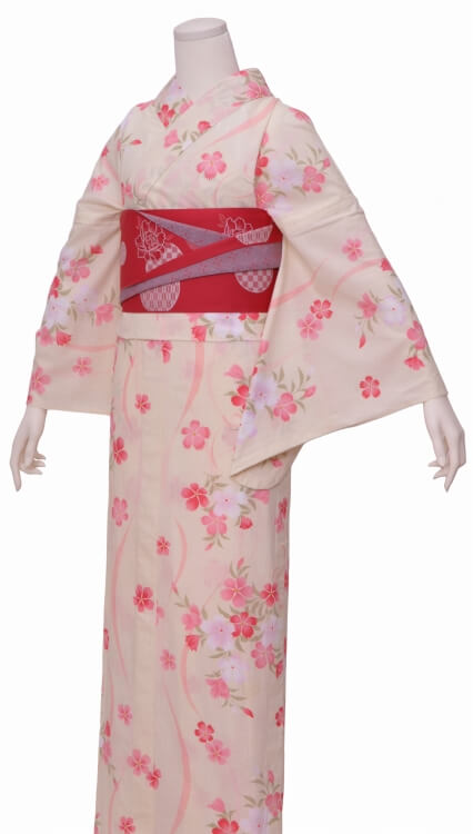 浴衣、帯、かばん、下駄、腰帯の5 点セットで購入頂きます。(浴衣により料金が異なります)