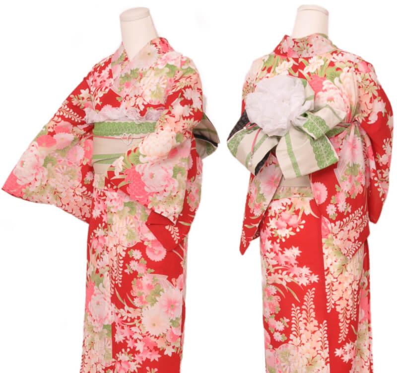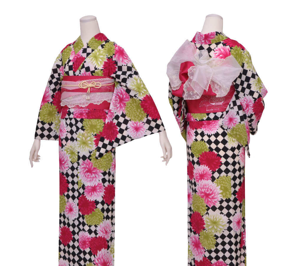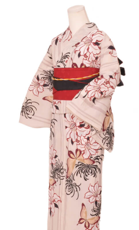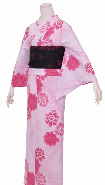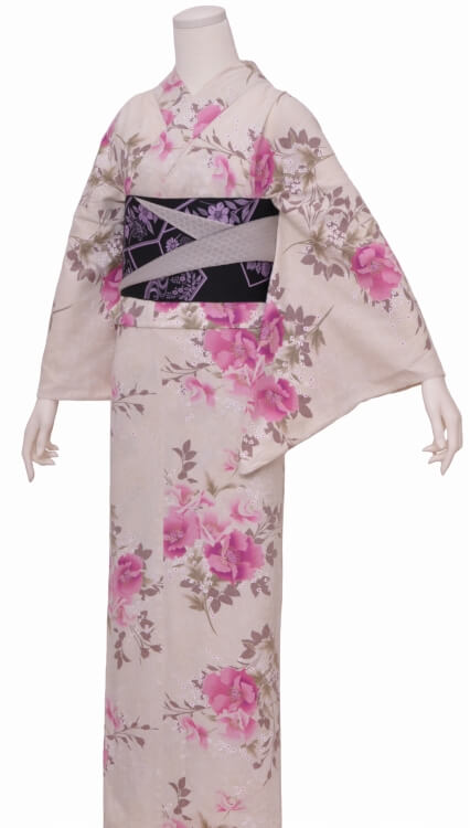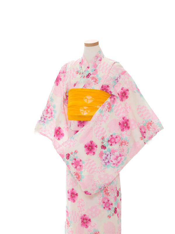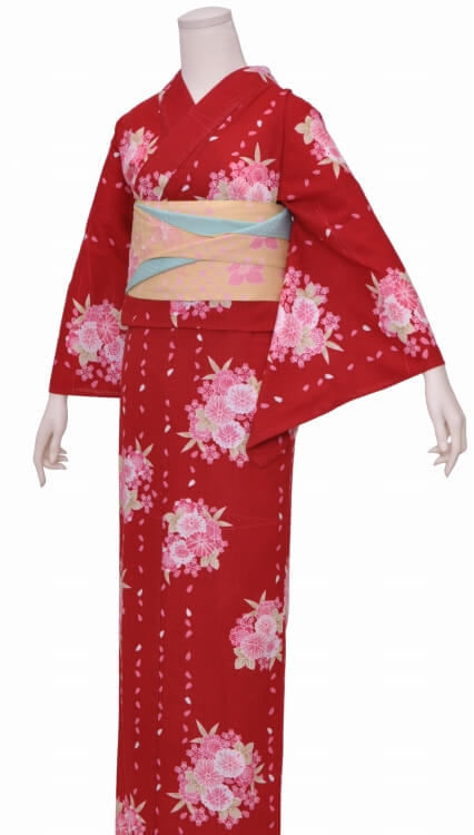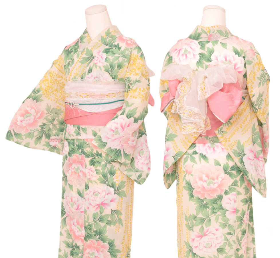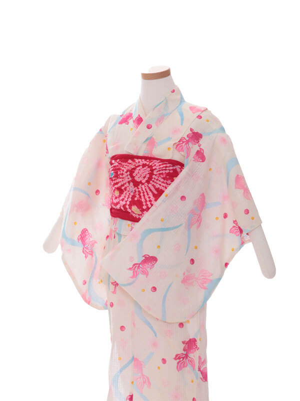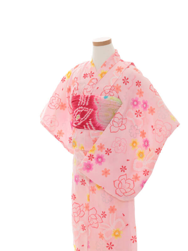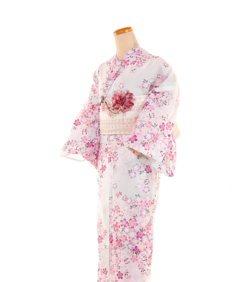 浴衣、帯、かばん、下駄、腰帯の5 点セットで購入頂きます。(浴衣により料金が異なります)
