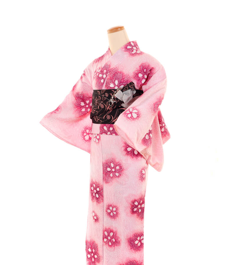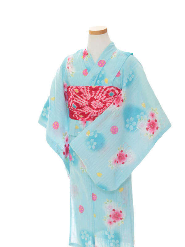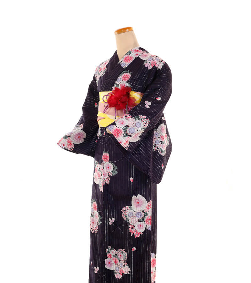 浴衣、帯、かばん、下駄、腰帯の5 点セットで購入頂きます。